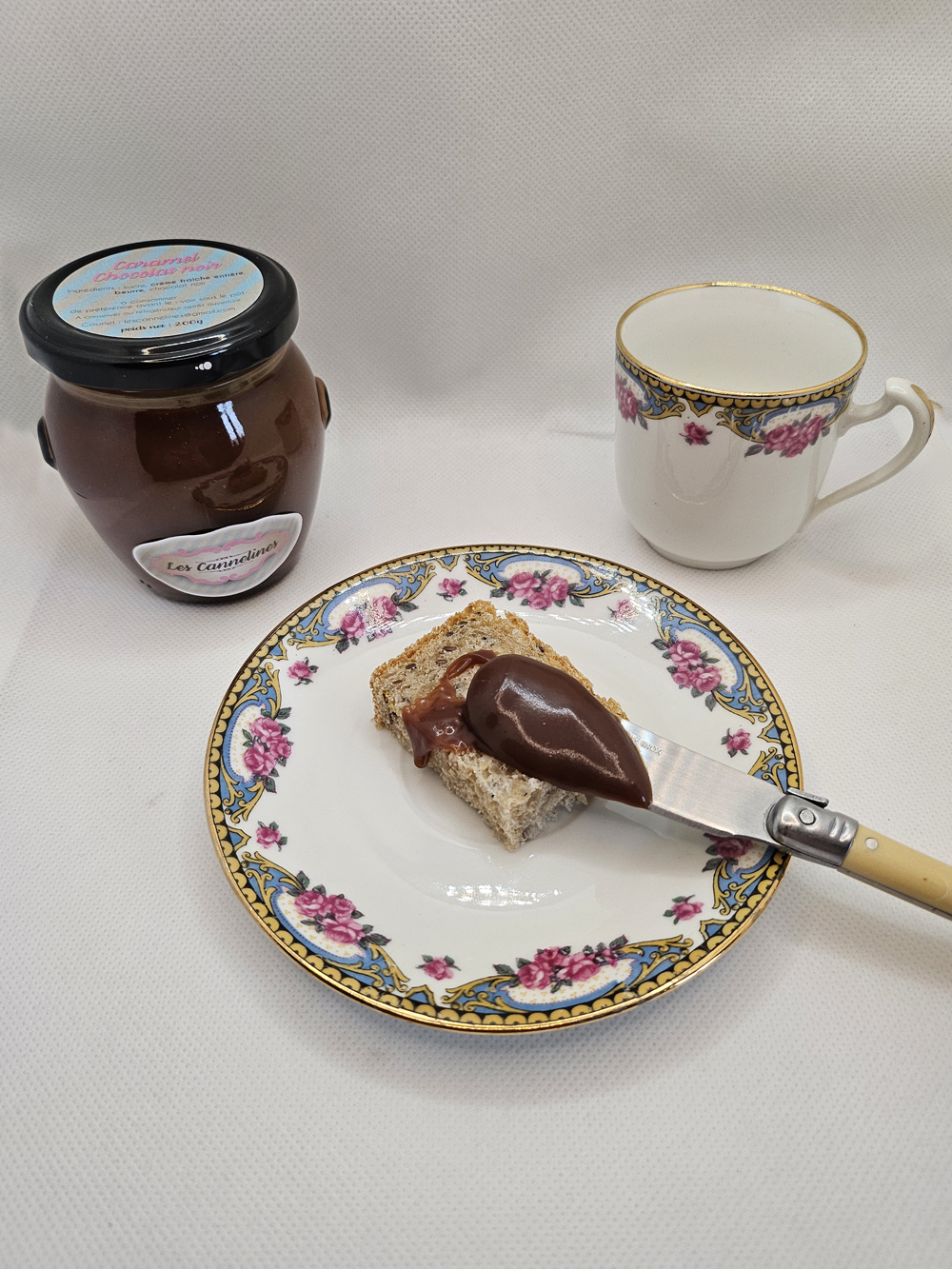 J’ai souhaité faire une variante au fondant du caramel que je réalise déjà avec l’intensité du chocolat , j’ai essayé d’équilibrer au mieux ce subtile mélange . Les usages peuvent être multiple, crêpes, brioche, pain voir même uniquement une petite cuillère !! À conserver au réfrigérateur une fois ouvert.