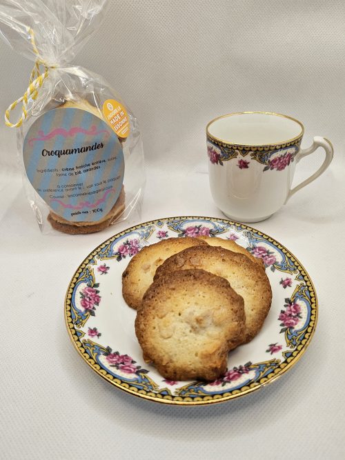 Petits biscuits de forme ronde inspirés des gâteaux à la peau de lait que me fait ma maman. Ce biscuit est très fin, très craquant et caramélisé avec ma méthode de cuisson douce et lente. Mes craquants sont parfaits avec un café, un thé, une crème, une mousse au chocolat, une compote, une glace ainsi que n’importe laquelle de vos inspirations. À conserver à l’abri de l’humidité, bien refermer le paquet après ouverture.
